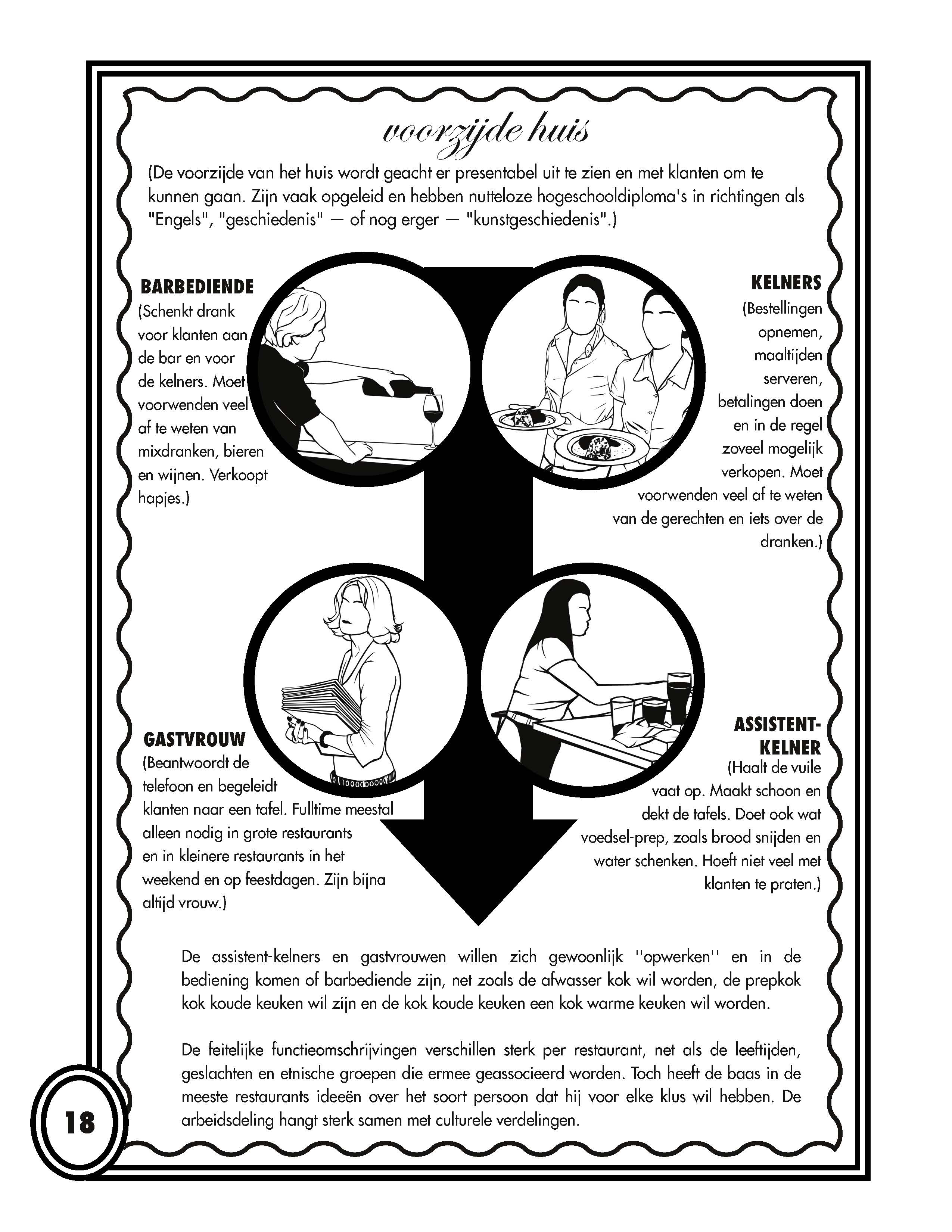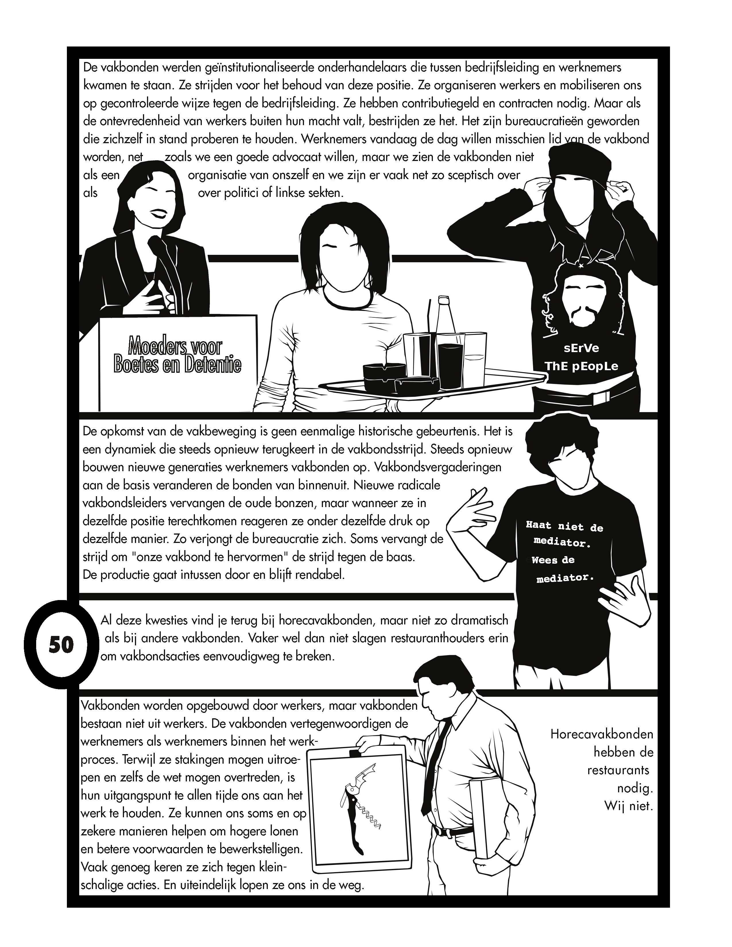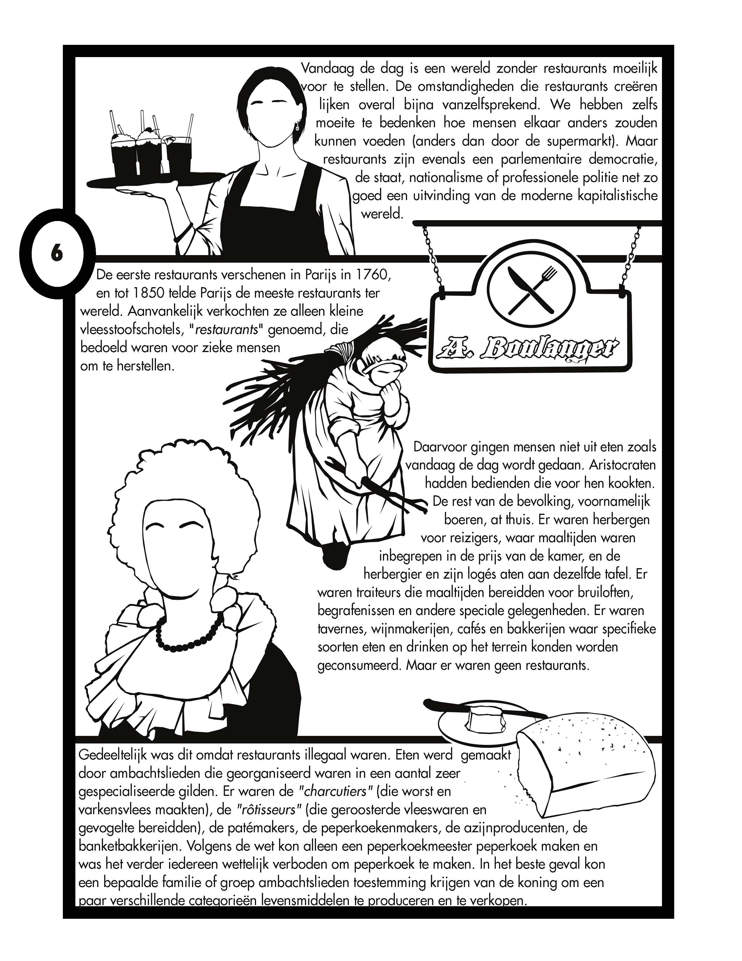 Abolish Restaurants is een 60-pagina tellende geïllustreerde gids bij de dagelijkse ellende, stress, verveling en vervreemding van restaurantwerk, evenals manieren waarop restaurantwerkers ertegen strijden. Daarnaast analyseert het de kleinburgerlijke mentaliteit die binnen restaurantcultuur wordt verbreid door de logica en rollenpatronen van 'gast', 'baas' en 'werknemer'. Aan de hand van een reeks antikapitalistische ideeën en een schat aan persoonlijke ervaring is het deels een analyse, deels een strijdoproep. De eerste, oorspronkelijke druk in het Engels dateert van 2006.